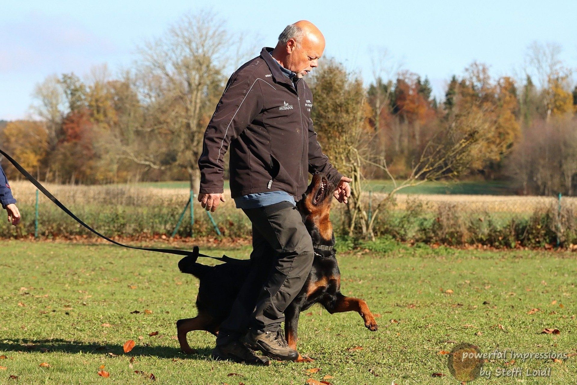 Seit er laufen konnte, hatten es Ihm die Hunde angetan. Er machte mit Shirkan vom Bamberger Tal schließlich seine erste Gesellenarbeit. Er bildete ihn selbst aus - bis hin zur VPG III, FH1 sowie ZTP und Körung. Weitere Hunde folgten wie z.B. Fee von Tengen, Balou vom Bamberger Tal, Ilko vom Bamberger Tal sowie Nevero und Peegy vom Bamberger Tal. Er ist Schutzdiensthelfer im ADRK, wo er sich auf Körungen und DMs, Weltmeisterschaften und auch anderen Verbänden wie z.B. DMC, DVG, SWHV regelmäßig unter Beweiss stellt. Weiterhin ist er VDH-Ausbilder für Hundeführerscheine. Was mich als Vater besonders Stolz macht, ist, dass er seine Hunde gern hat und ein hilfsbereiter, im Kopf klar gebliebener Hundesportler ist. Er gibt Seminare im Hundesport bei denen keiner zu kurz kommt. Mit seinem Mali Croco war er 2019 Bundessieger DVG